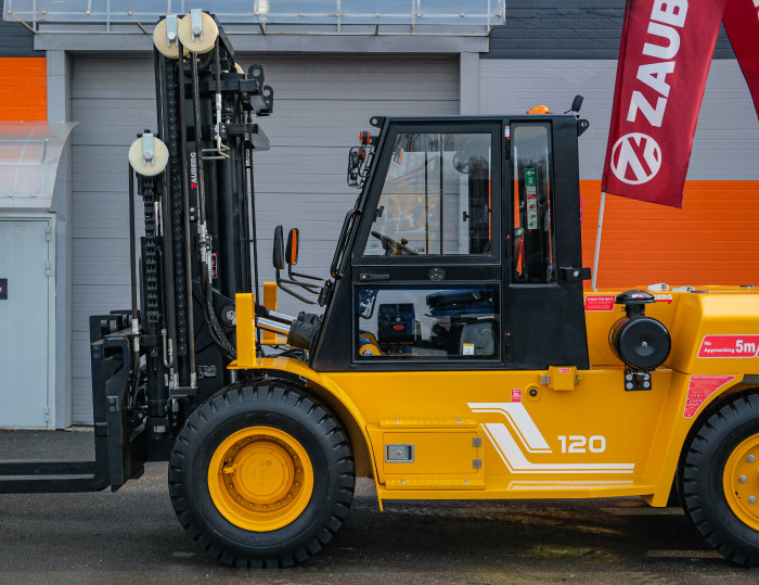 Дизельный погрузчик ZAUBERG DS120 имеет грузоподъемность 12 000 кг с центром тяжести груза 600 мм и типовую для погрузчиков бренда высоту подъема 3 000 – 7 000 мм. Скорость подъема груза — 350 мм/с, опускания — 370 мм/с. За безопасность эксплуатации отвечает надежная мачта с широким обзором, выполненная из высококачественного немецкого стального профиля увеличенного сечения.